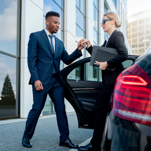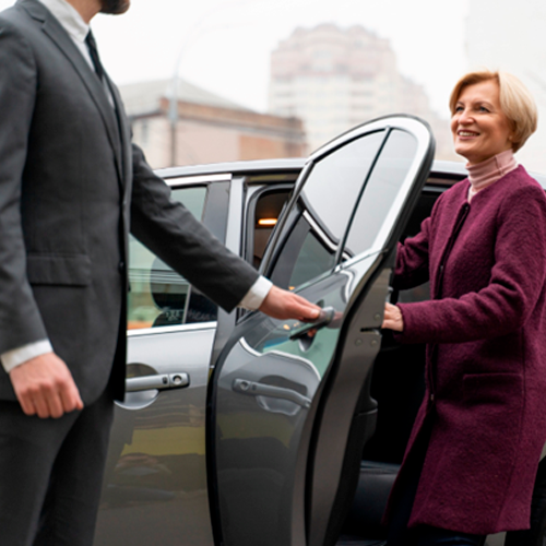 Seu motorista estará esperando no saguão de desembarque com sua placa com seu nome. Ele ajudará com suas malas antes de acompanhá-lo até seu veículo.